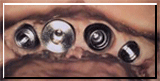 with human bone and tissue. Titanium has been scientifically prooved to bond with the bone-a phenomenon known as osseointegration. The implants are surgically placed directly into the jaw bone. Small posts are then attached to the implants which protrude through the gums. The posts provide stable anchors for artificial replacement teeth. |